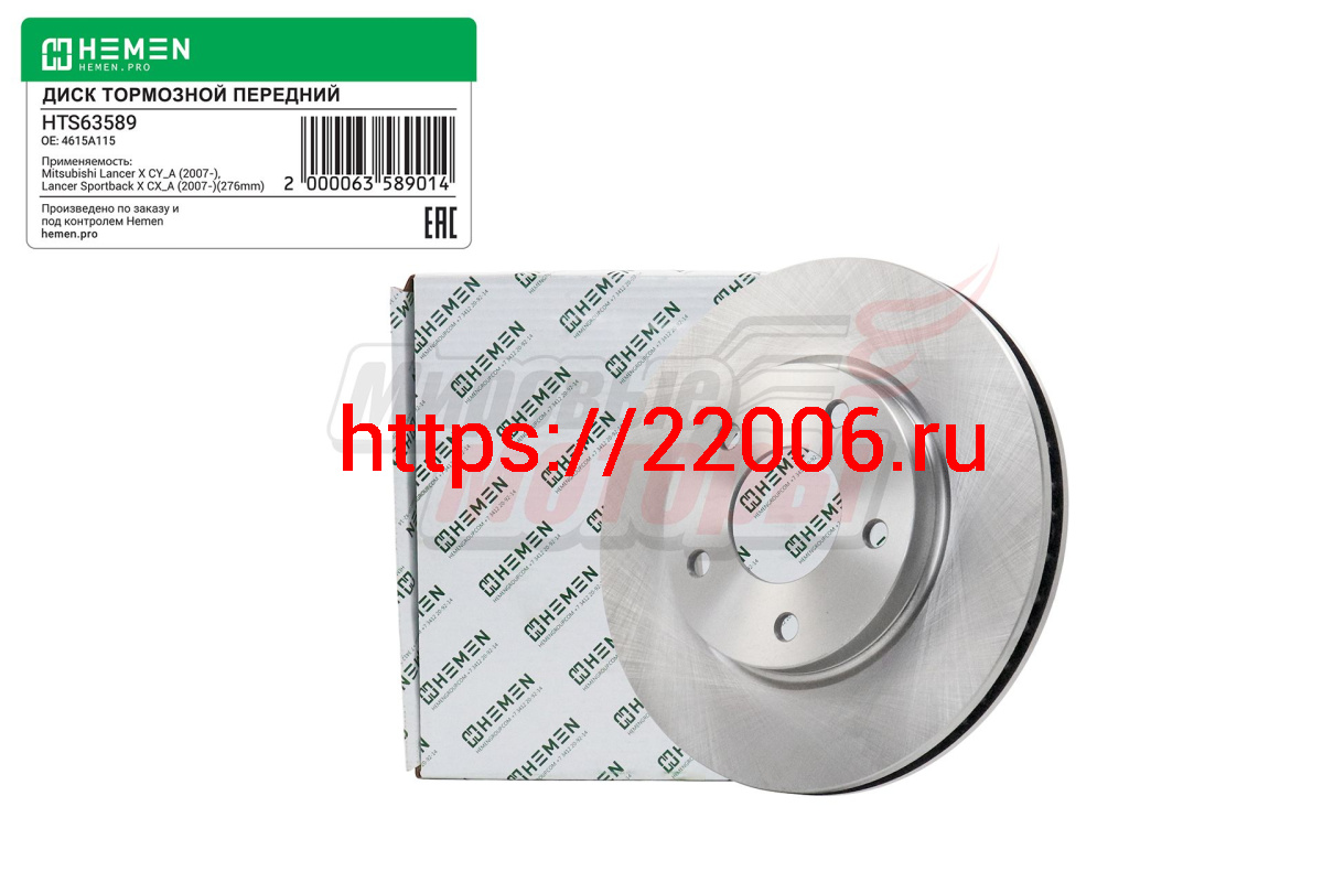 - Диск тормозной передний Mitsubishi Lancer X 08-, диам. 276 (HTS63589) в Санкт-Петербурге недорого