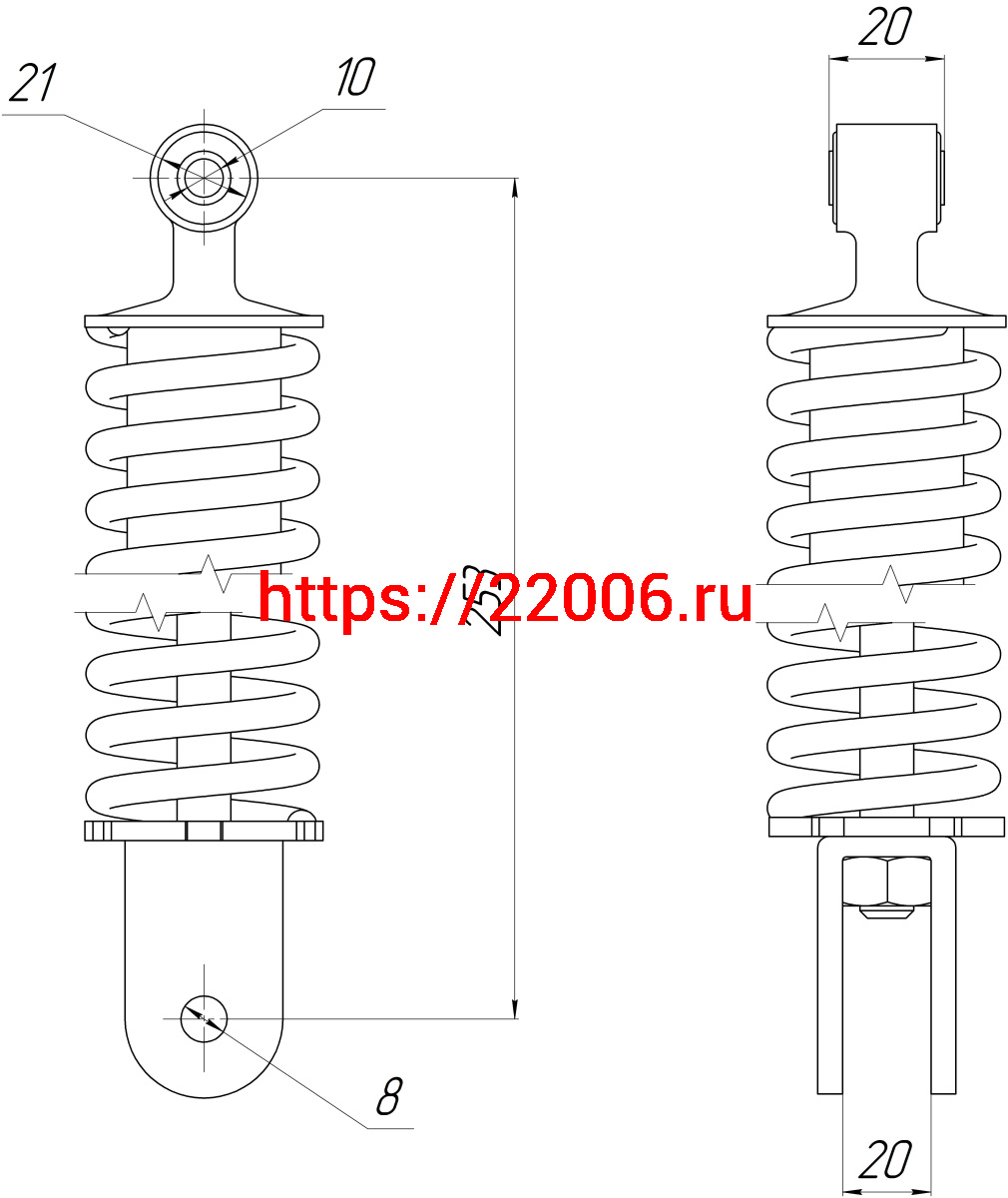 - Амортизатор зад. L-253, D1-21, d1-10, H1-21, d2-8, H2-21 YAMAHA JOG-50 в Санкт-Петербурге недорого