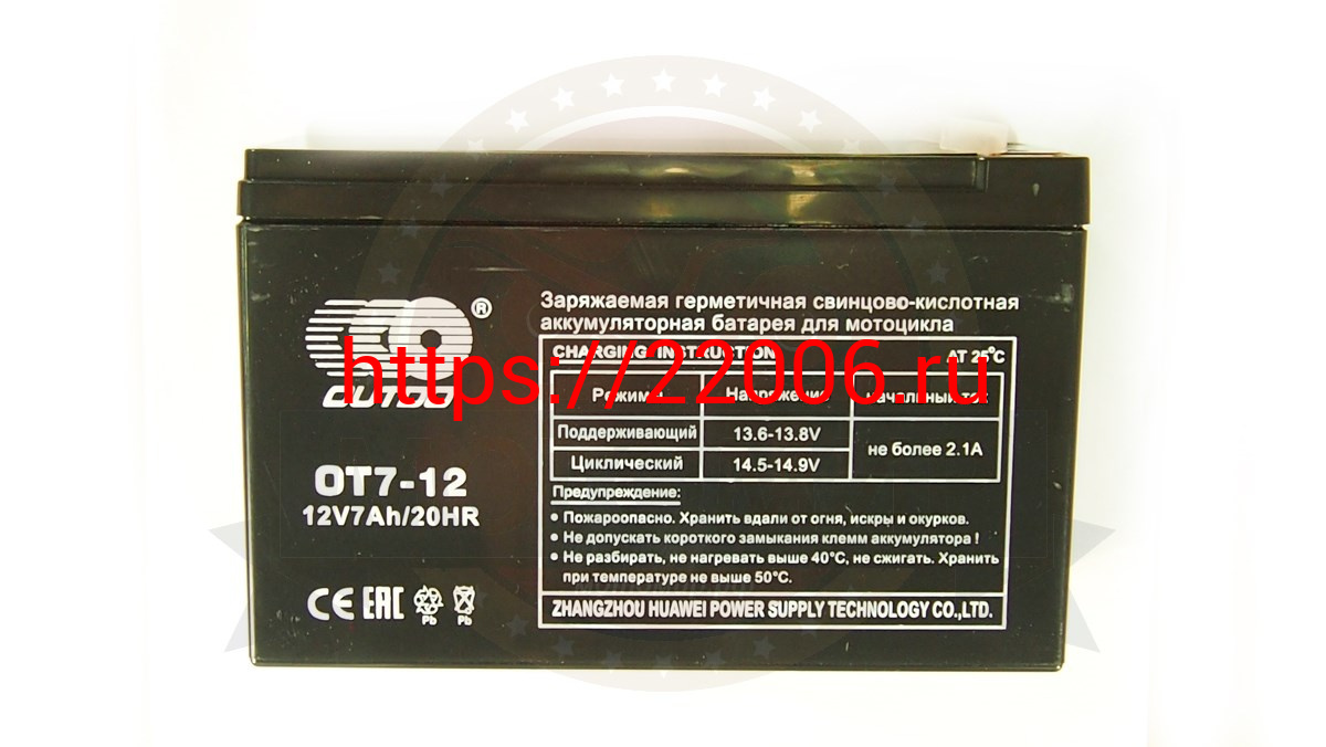 - Аккумулятор 12В 7 А/ч, кислотный AGM OТ7-12, OUTDO (151х65х94х100по_клеммам) гориз.клеммы справа в Санкт-Петербурге недорого