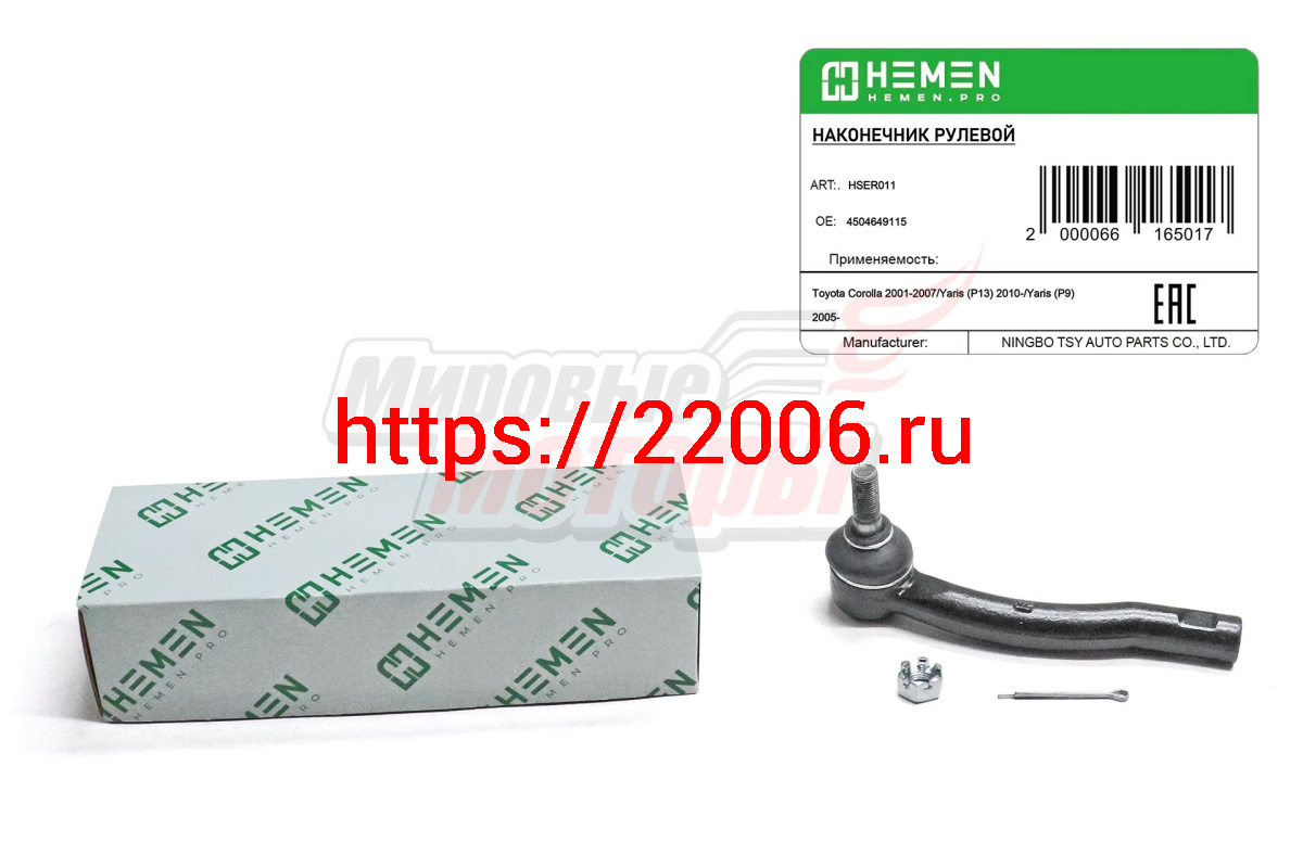 - Наконечник рулевой правый Toyota Corolla 02-, Yaris 05- (HSER011) в Санкт-Петербурге недорого