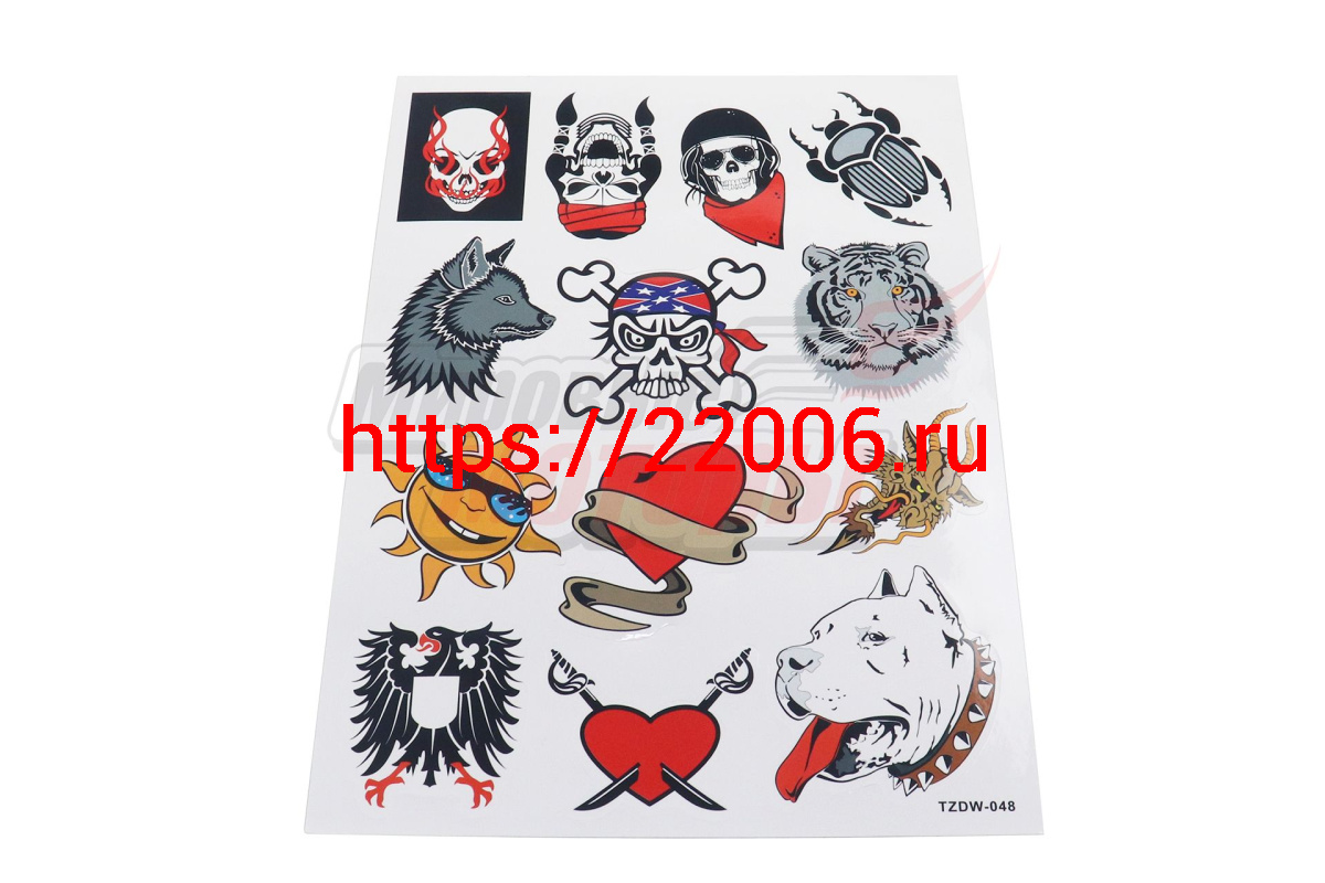 - Наклейки: черепа, волк, тигр, сердце и др. MV22A4D048 (13 элементов)(21х30) в Санкт-Петербурге недорого